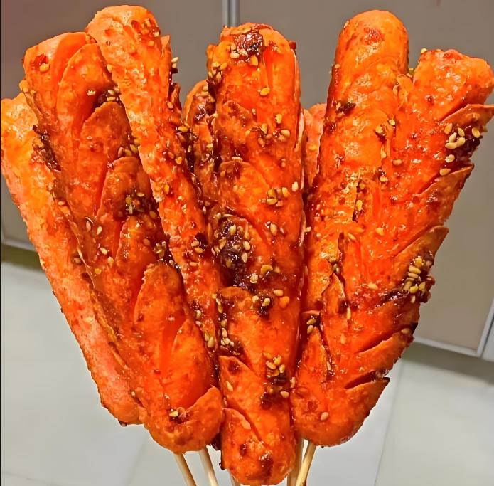 每次接孩子放學時,學校門口的澱粉腸攤位前都圍滿了人。說實話,烤熟的澱粉腸,刷上一些孜然,然後淋一遍特製的小辣椒油,然後邊走邊喫,那真的是嘎嘎香。