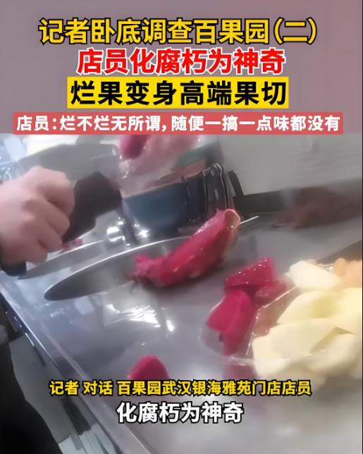 有記者臥底一家水果店,看到一個雙開門的冰箱下面兩層有一些不新鮮、腐爛的水果。正看見工作人員用壞的褚橙在做水果拼盤,就問:壞的做拼盤,喫起來不會有爛的味道嗎?