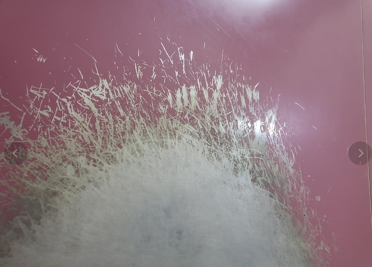 遼寧的一個媽媽發了一張待產室的牆,這個待產室的牆本來是粉紅色的,但是有一塊卻抓成了白色,也就是外面粉紅色的油漆都全部被抓沒了,這就是在待產的時候,媽媽因爲太疼抓的。