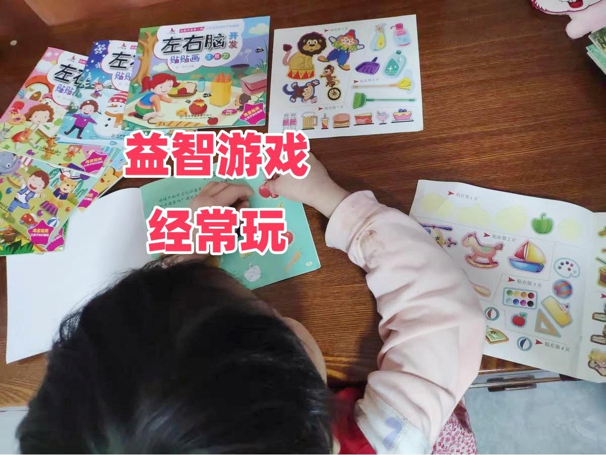 像我家孩子在3歲左右,就給他們玩了《0-6歲越玩越聰明提升專注力的貼貼畫》,共有16冊,內容非常豐富。