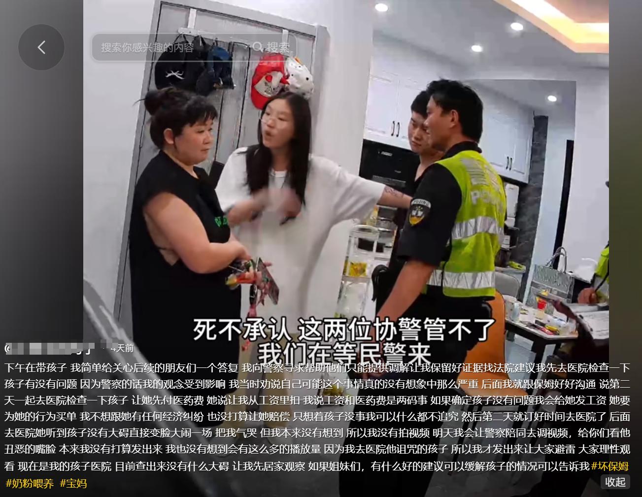 媽媽直接報警,萬萬沒有想到,警察來了之後瞭解事情的經過,反偏幫保姆:說是保姆餵養觀念有偏差,孩子要有明顯的生病的症狀,達到立案標準才能立案,所以現在沒有辦法抓保姆。