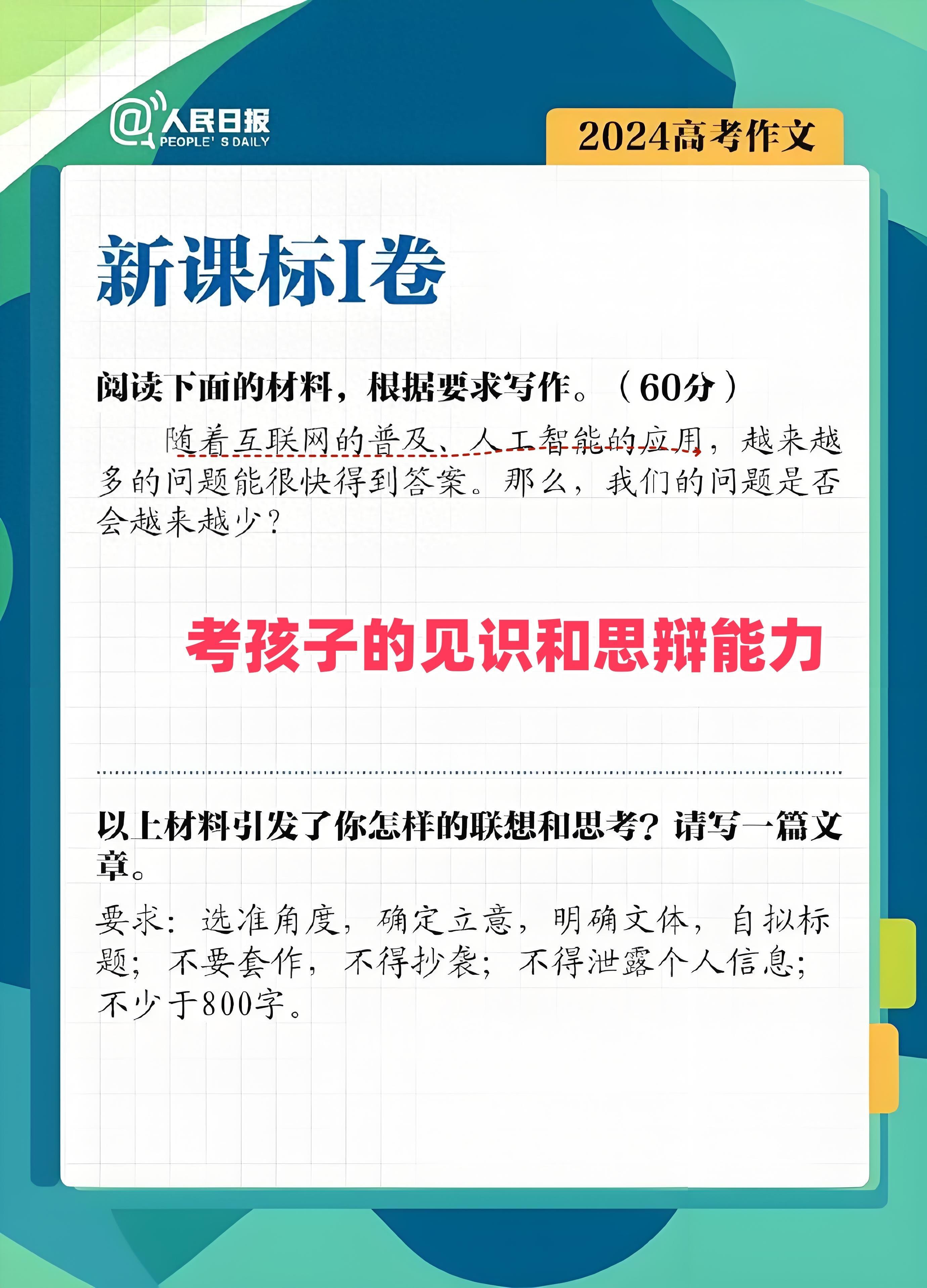 而語文中作文也是如此,像“人工智能”的題目,考驗的是孩子的見識和思辨能力。