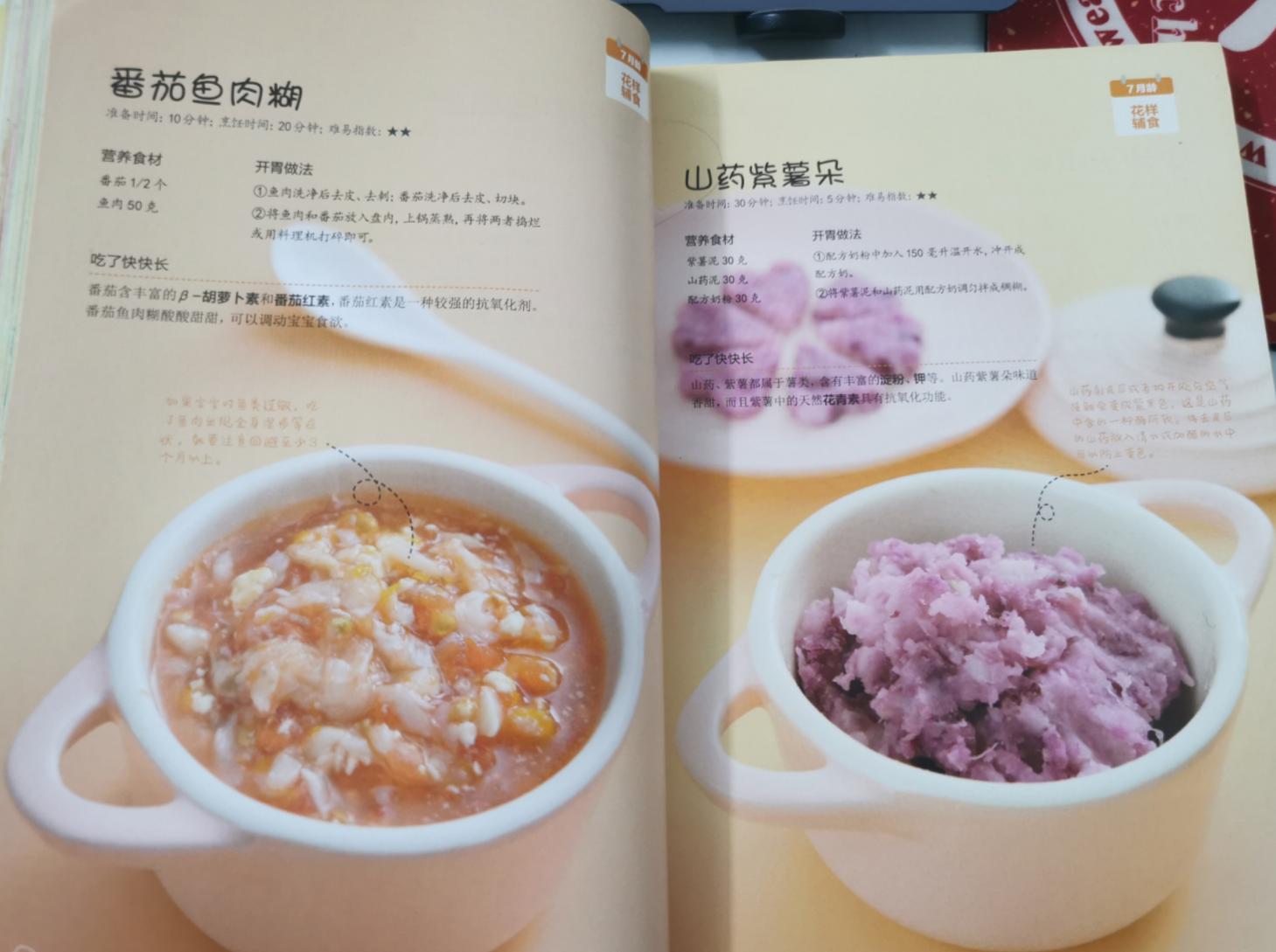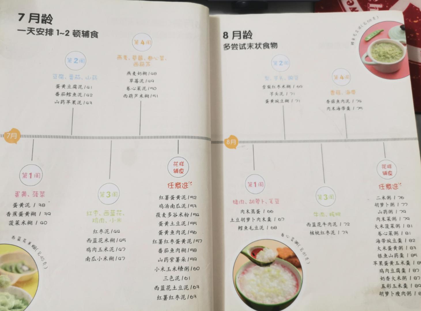 裏面就會告訴我們在寶寶6個月到3歲每一個月齡應該怎麼給孩子安排輔食?寶寶不同月齡需要的輔食性狀以及輔食的量都是有變化的,這本書就會分階段幫家長們總結出來的。