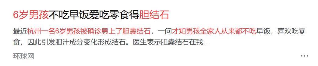 杭州有個6歲的小男孩被確診爲膽囊結石,後來才發現一家人都沒有喫早餐的習慣。