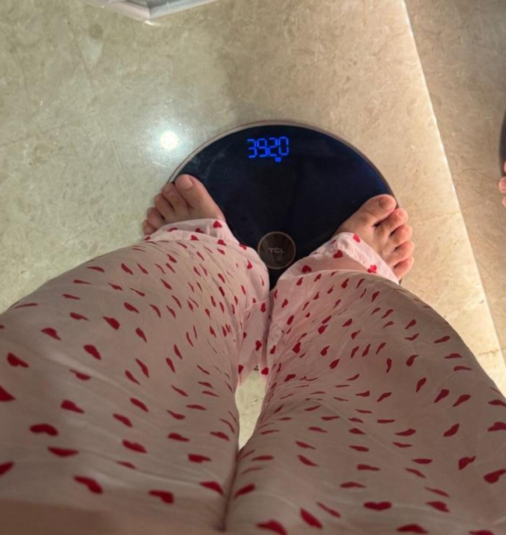 確實王燦身高1米64,但根據她曬出來的體重不到40公斤,也就是不到80斤,體重只是39.2公斤,也就是78.4斤。我們家孩子上小學四年級,他們班很多女同學的體重都超過這個數了。