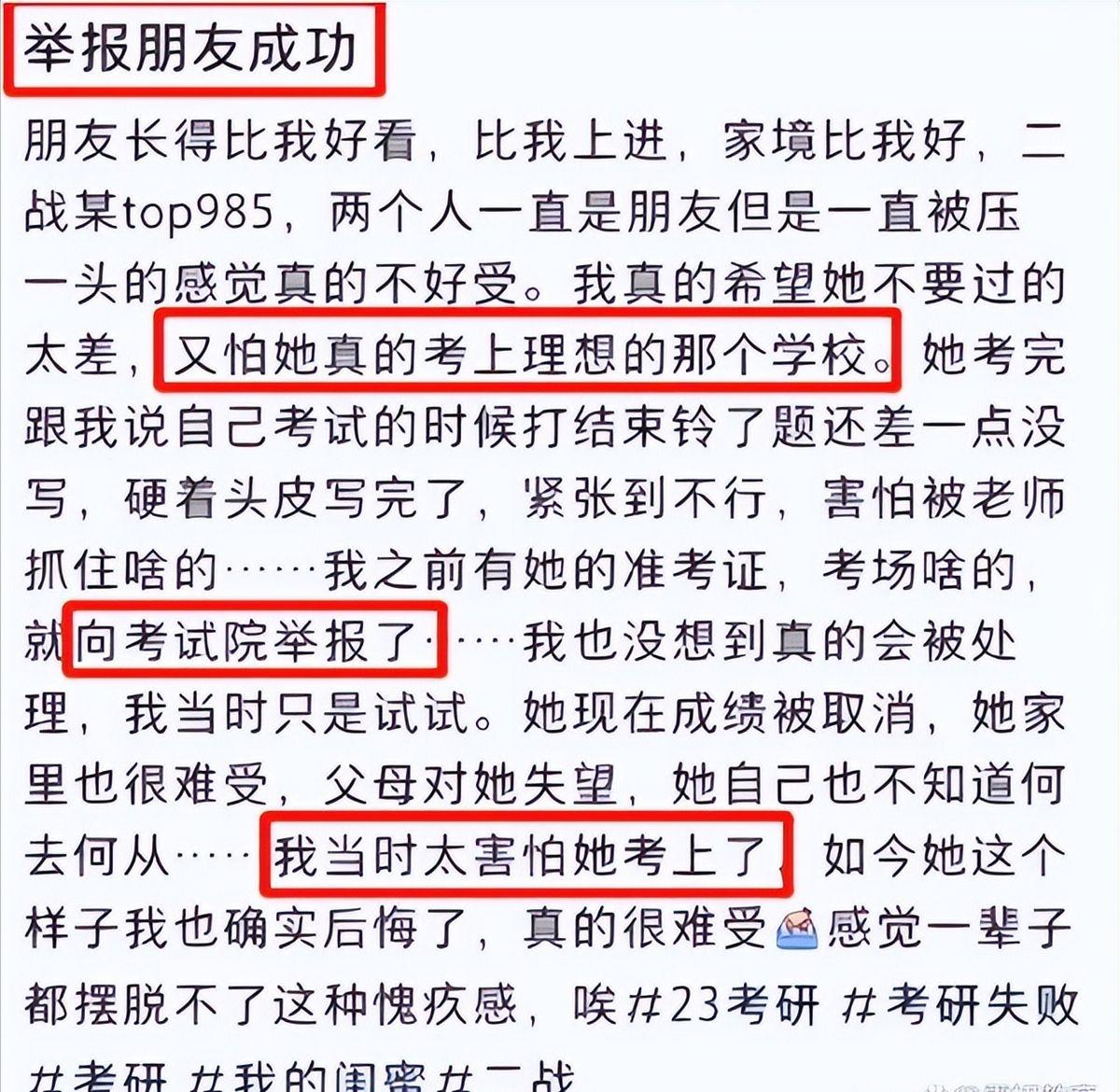 考試打鈴後,女孩仍舊答題,閨蜜知道後舉報了女孩