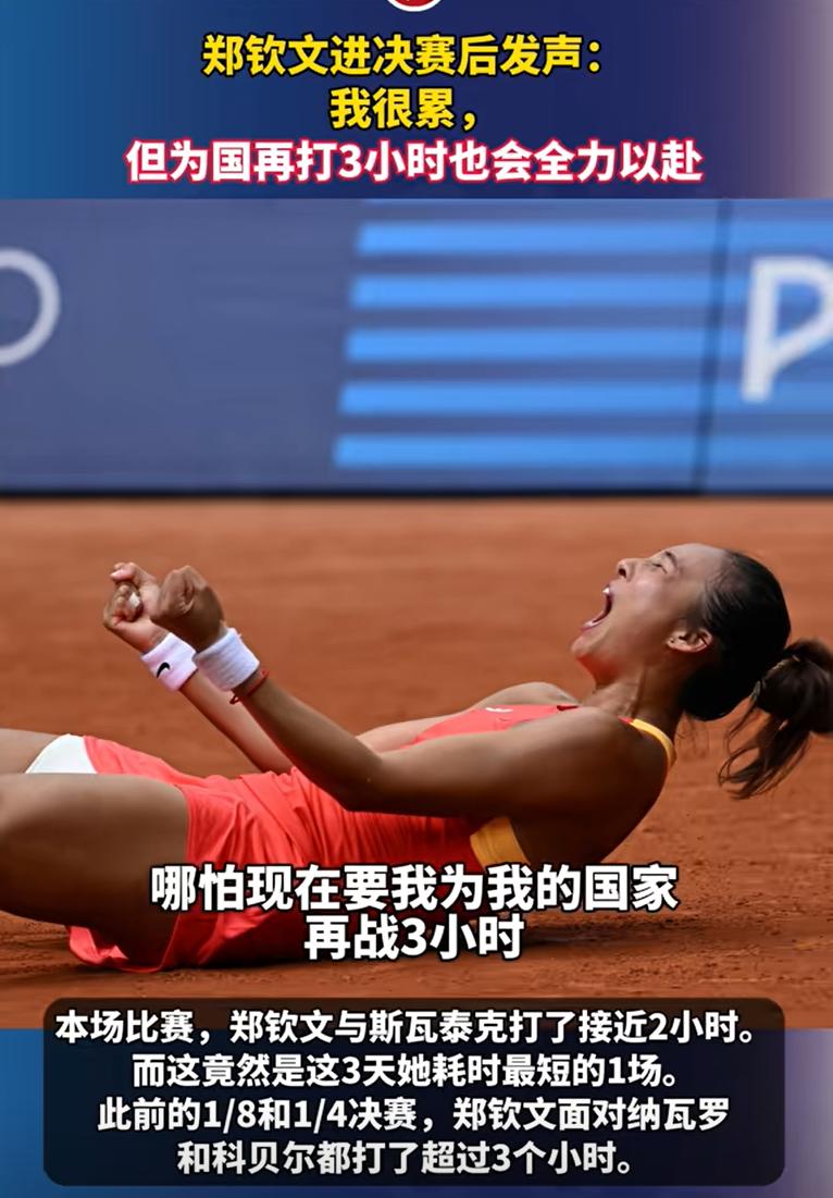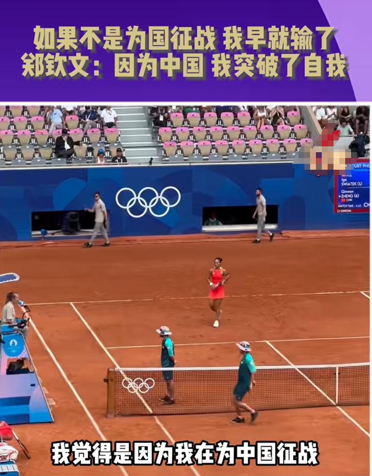 有這樣的信念支持着鄭欽文,她就慢慢的一路打下來,而且越打越有耐心,越打越有感覺。所以鄭欽文之所以能打贏,那是因爲她肩負着國家的榮耀,她把國家的榮耀放在第1位,真的令人非常的佩服。