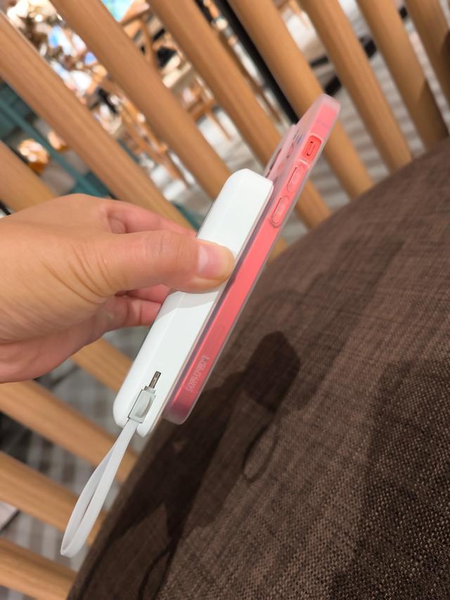 我用的是蘋果手機,剛好匹配磁吸功能(配適iphone12-15全系列手機),把手機直接貼在充電寶上就可以充電,磁吸很穩,就算帶着手機殼也能輕鬆吸附,15W的無線快充,真心不要太方便!