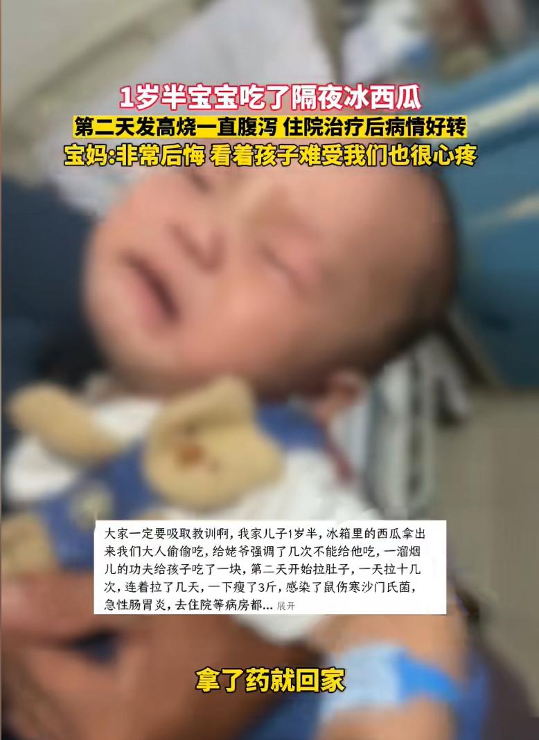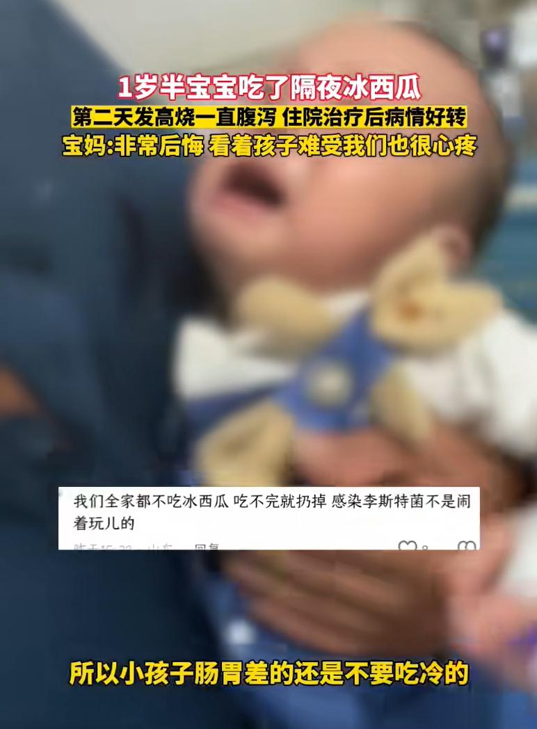 網上看到一個愧疚的媽媽提起自己孩子生病的經過,就是家裏面買西瓜,因爲西瓜比較大,於是就放到冰箱裏面,第2天拿出來喫,其實就是隔夜的冰西瓜。
