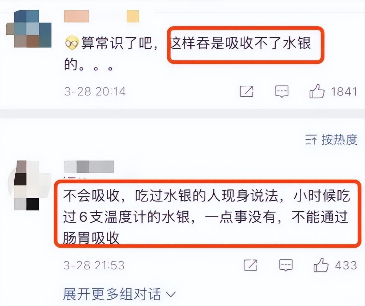 在查資料過程中,有網友說:水銀不會被人體吸收,並講述了自己小時候吞了6支體溫計的水銀來力證。