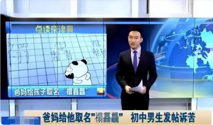 無獨有偶,還有個初中男孩名叫禤靐龘,足足有103畫。經常有老師念不出他的名字,大多老師第一次點名,都叫他:那個,雷龍來了沒?