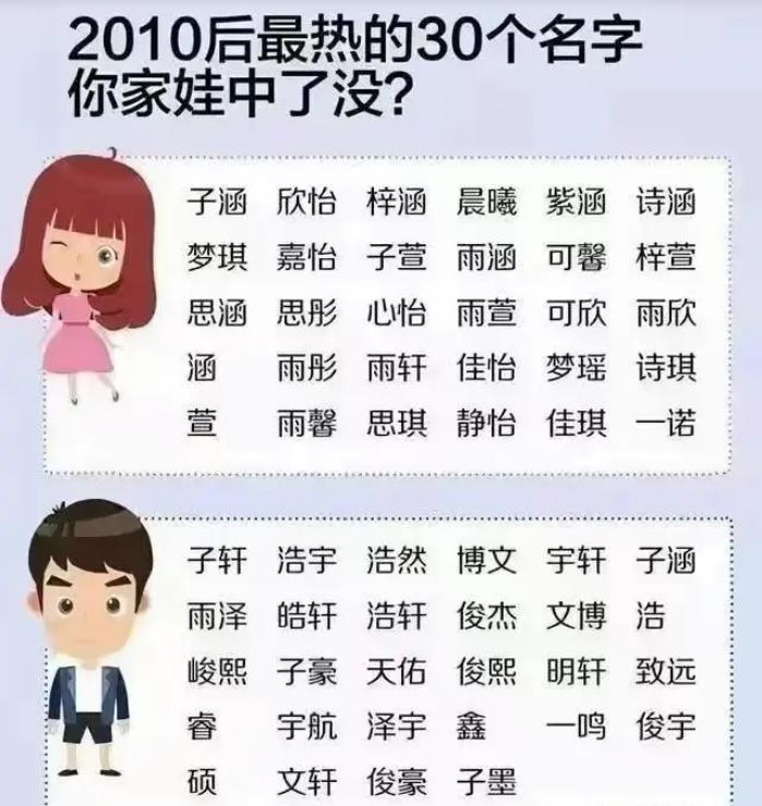 大家還記得“10後”的取名方式嗎?就像90後家長商量好了似的,都扎堆取名“梓涵”、“子軒”,這一代更是被網友譽爲被“梓/子”掉的一代。