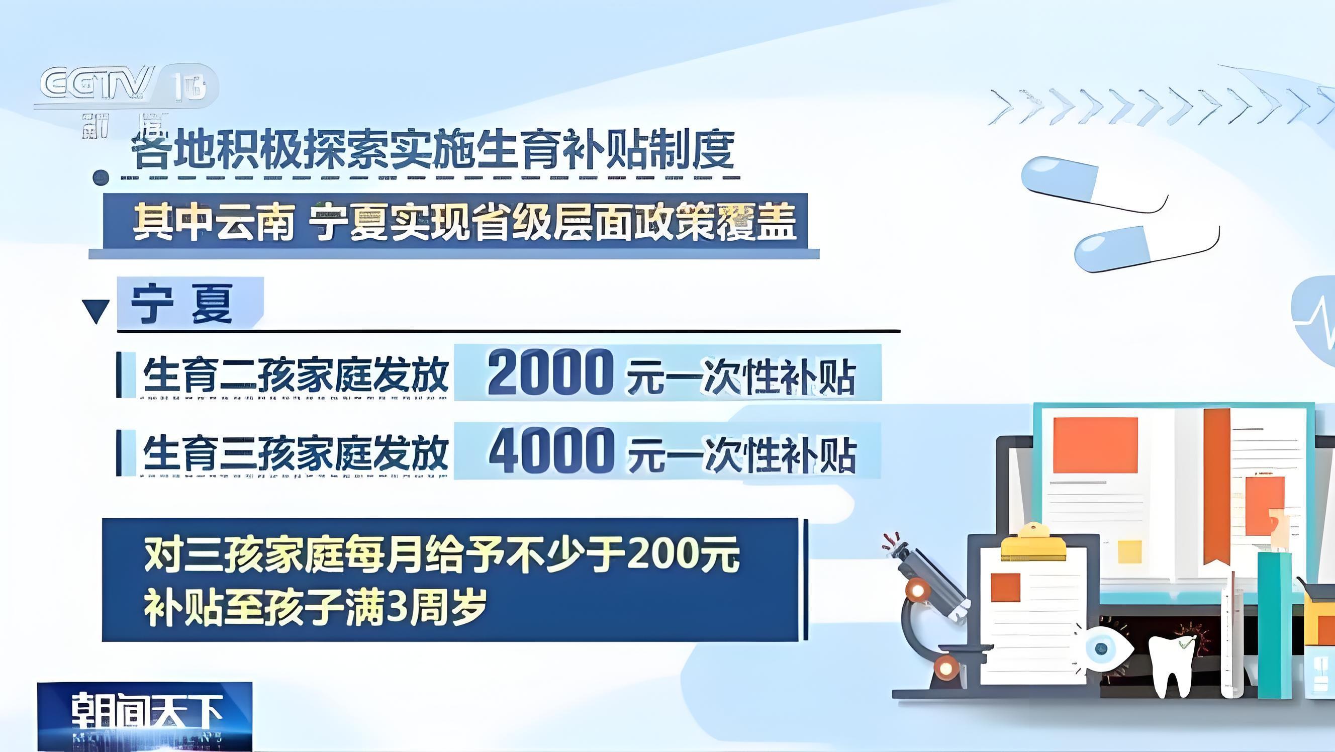 比如,寧夏爲生育第二個孩子的家庭發放一次性育兒補貼金2000元,生育第三個孩子的發放4000元。