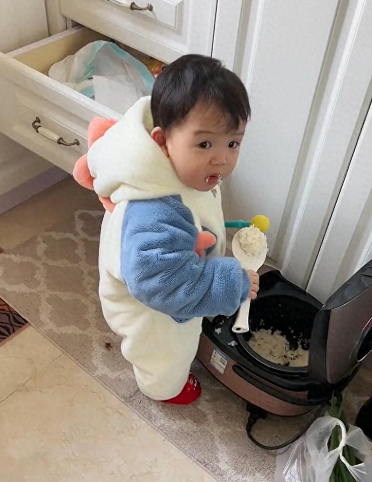 網上看到一個叫拾月的萌娃,在他差不多一歲半的時候,已經學會了穩穩的走路,而且還學會自己喫飯,有一天爸爸準備給拾月做飯,拾月卻悄悄的跑到家裏面電飯鍋旁邊,伸手打開電飯鍋,然後用飯勺把電飯鍋裏面的白飯裝了一大勺出來,然後就着飯勺送到自己的嘴巴里面,大口大口地喫着白飯。