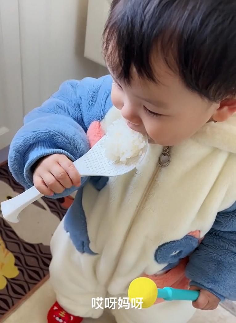 “最萌乾飯娃”火了,飯勺“偷”白飯狂喫,爸爸:家裏這麼窮嗎?