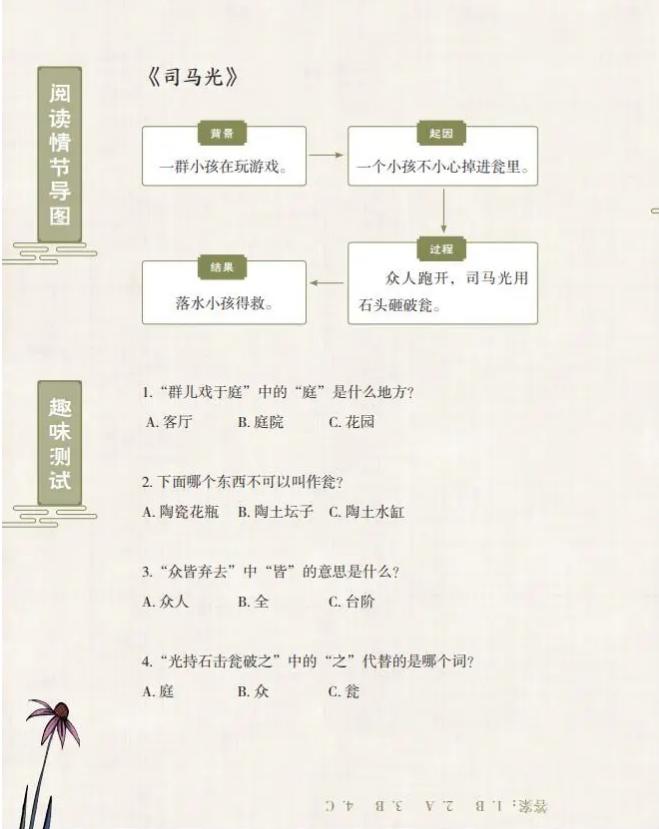 女兒9月份上三年級,前面跟她看一二年級的內容,她好多都不記得了。現在又看一遍,既能加強孩子對名句小古文的背誦能力,還能培養文言文的語感。