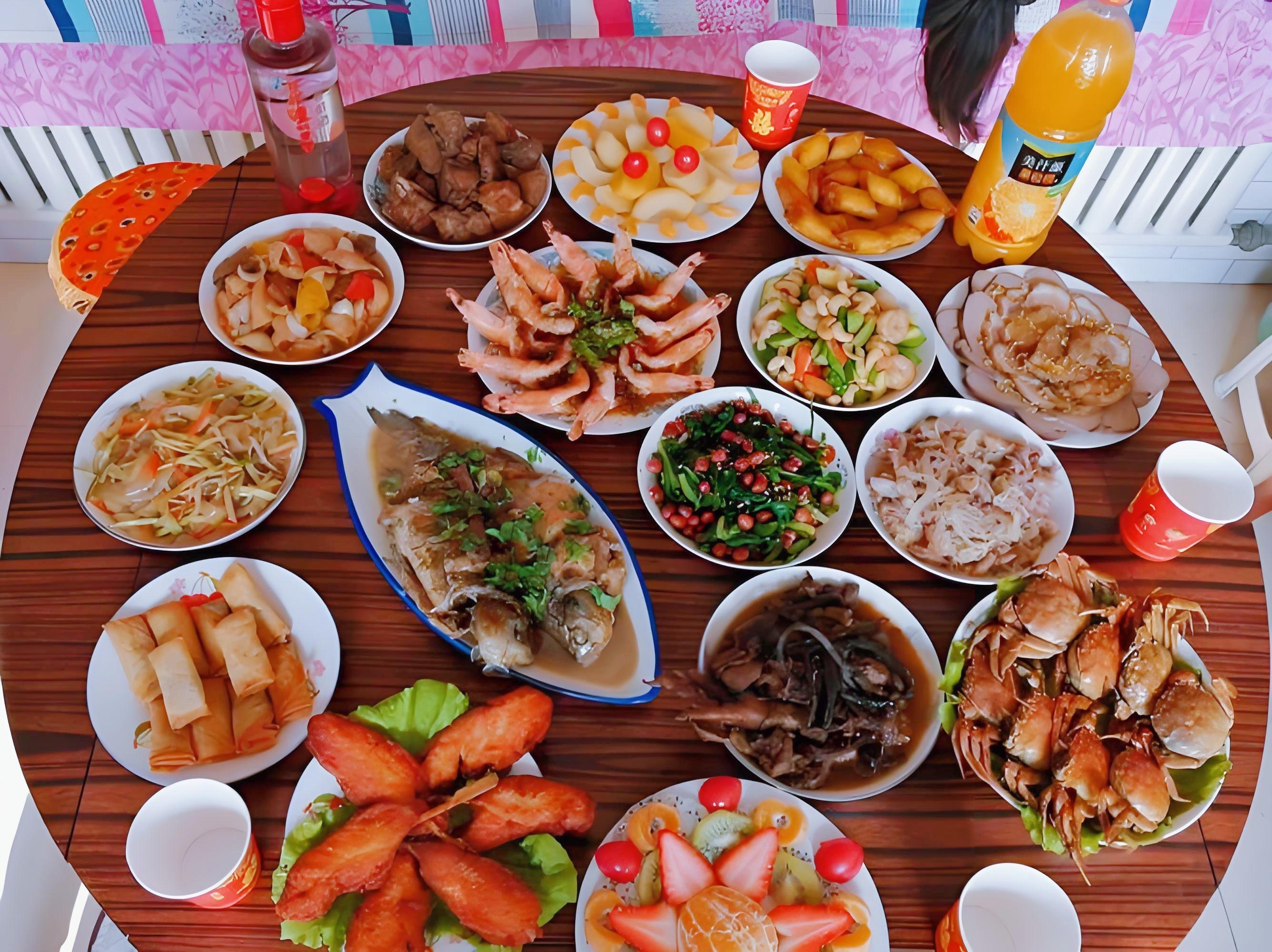 她真是一點休息的時間都沒有,從早忙到晚,終於在晚上給大家做了一桌子的美食,都是小姑子、婆婆、老公、小孩子們愛喫的菜。