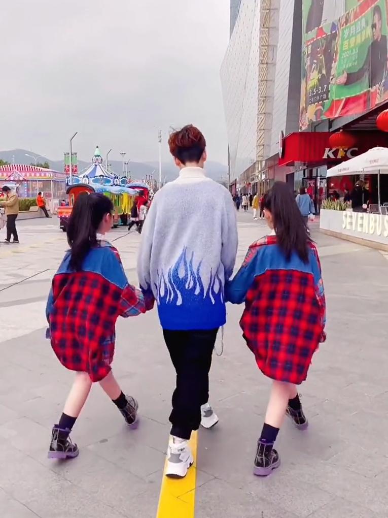 所以這對雙胞胎姐妹是爸爸把她們帶火的,爸爸穿着打扮都很潮,而且把很多的時間都花在兩個女兒的身上,看起來非常的年輕,很多人還以爲是孩子的哥哥。