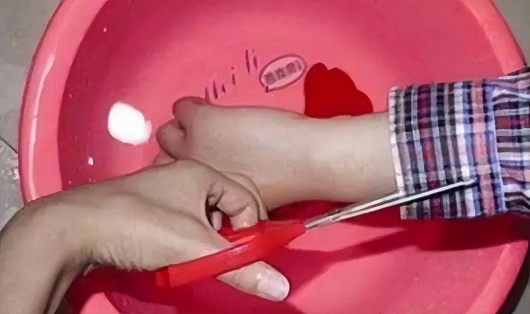 而服務員就叫丁丁的媽媽來看着孩子沖水,自己則是去廚房拿了一個乾淨的剪刀,然後用酒精消毒之後,就把孩子被燙傷部位的褲子剪了下來,幸好沖水衝得及時,褲子沒有粘在皮膚上,所以很容易就把傷口裸露了出來,看着有一點點紅,但幸運的是沖水比較及時,沒有看到有水泡。