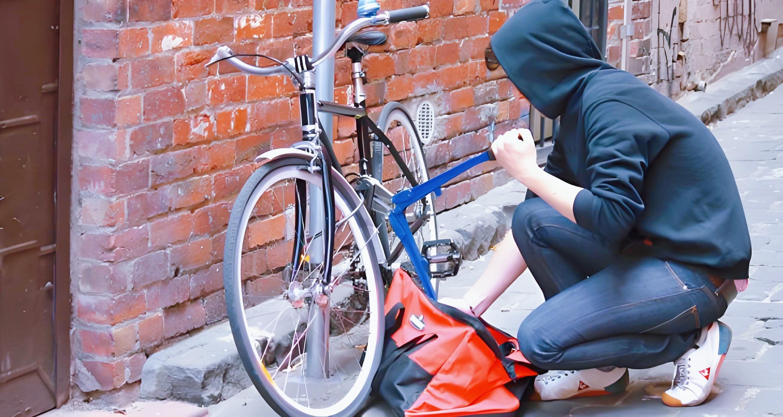 他買完東西以後,出來正好撞見一個人在撬開車鎖,騎起自行車就跑。