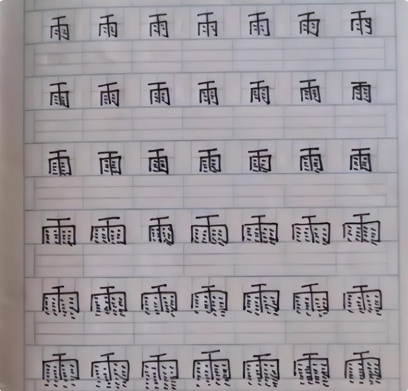 被罰寫“雨”字,雨越下越大,本來雨裏面只有4點水,最後變成了10點水,甚至是20點水30點水。