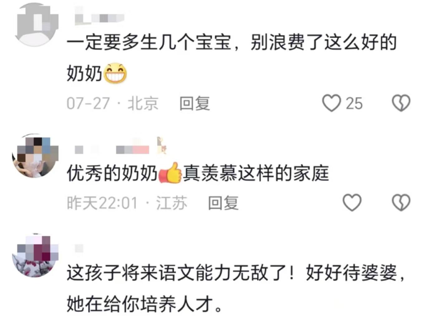 網友們表示實名羨慕。更有網友提議:有這麼會帶娃的奶奶,應該要多生幾個,畢竟有這樣奶奶真的是可遇不可求。