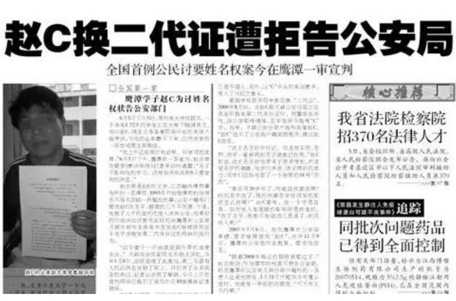 還有網友的名字叫趙C,甚至因爲在換二代身份證的時候被公安局勒令改名,他卻將公安告上了法庭……