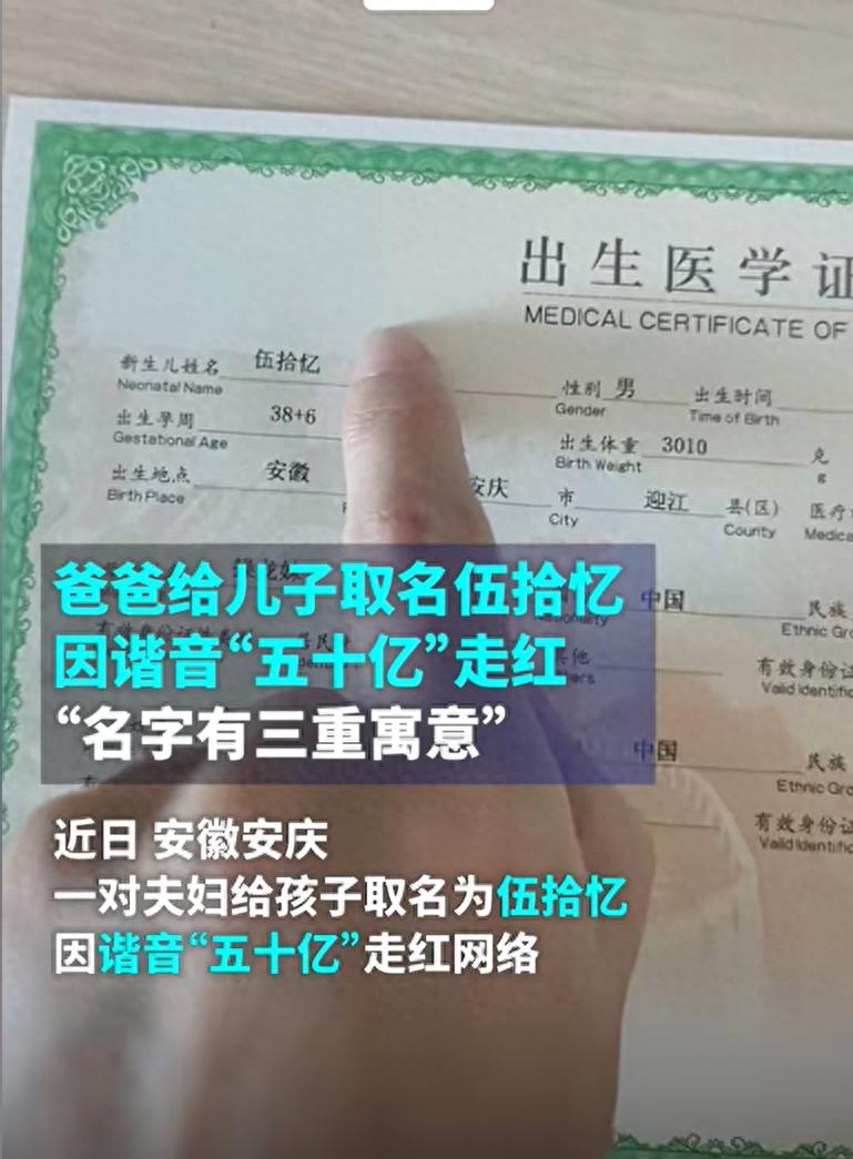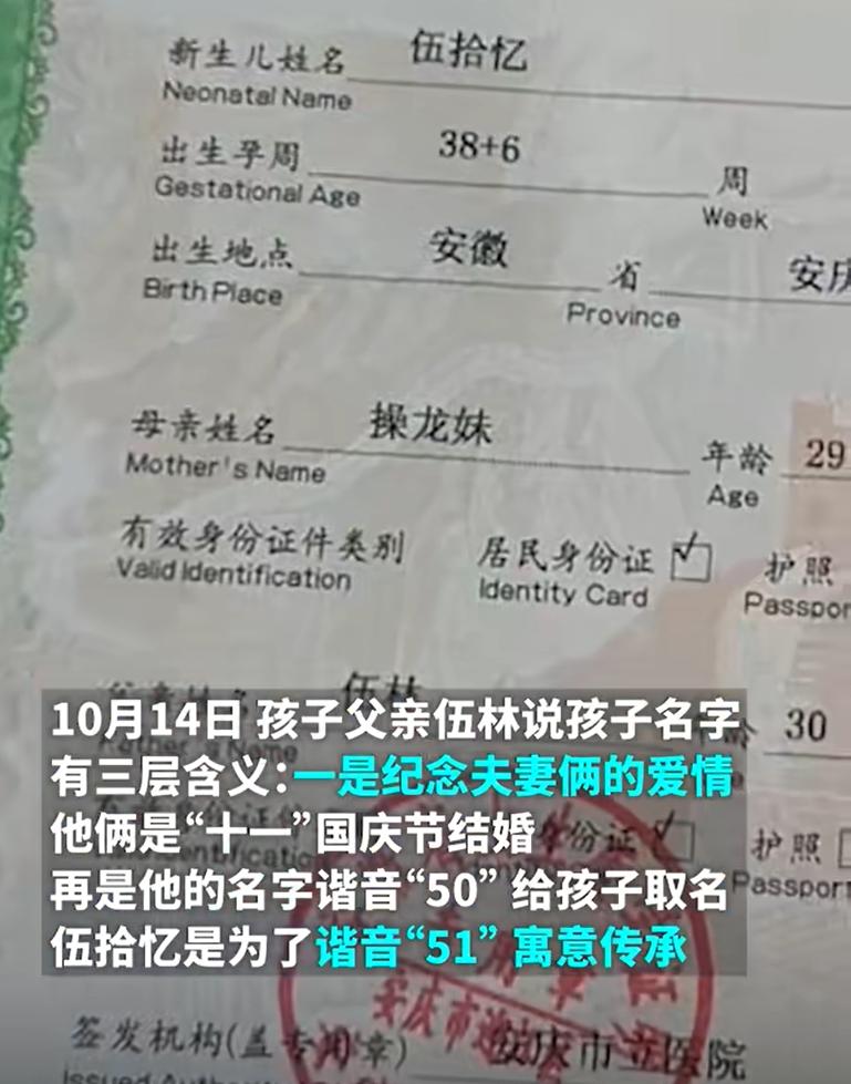 伍爸爸給娃起名“拾憶”走紅,霸氣且獨特!網友:媽媽名字更牛