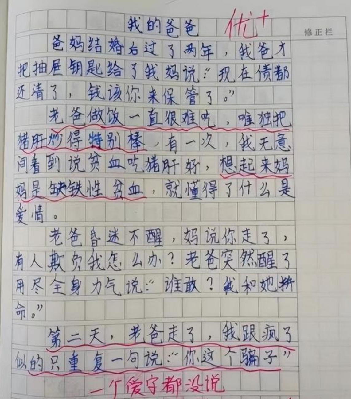 小學生滿分作文《我的爸爸》,同時戳中笑點淚點,老師:叫媽媽來