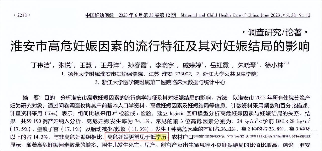 查資料時在網上找到了一篇醫學院的論文,就明確提到:高危妊娠更常見於低學歷人羣。