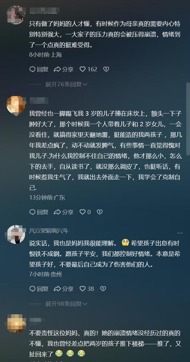 還有網友說:同情這個媽媽,網友說情緒崩潰的時候,真的控制不住自己。