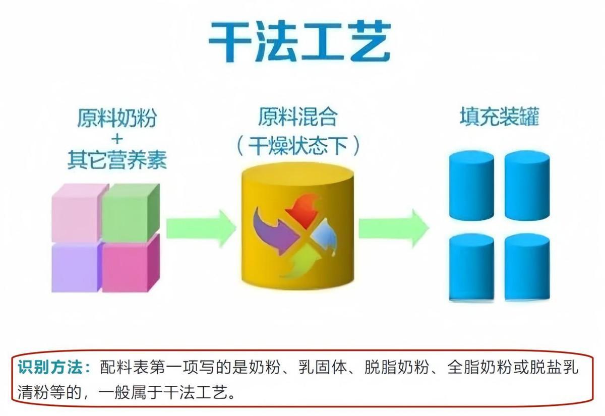 相比之下,幹法工藝則是將奶粉乾粉與其他成分混合,雖然操作簡便,但容易破壞奶粉的顆粒性,導致營養流失。