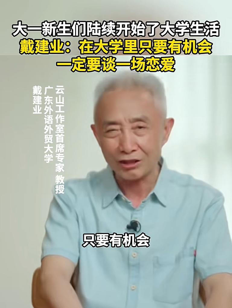 廣東外語外貿大學教授戴建業就提到,大學裏面有機會一定要談一場戀愛,在談戀愛中能得到成長,能知道怎麼跟異性去相處,能讓自己情商變得更高一些,這也是非常重要的。
