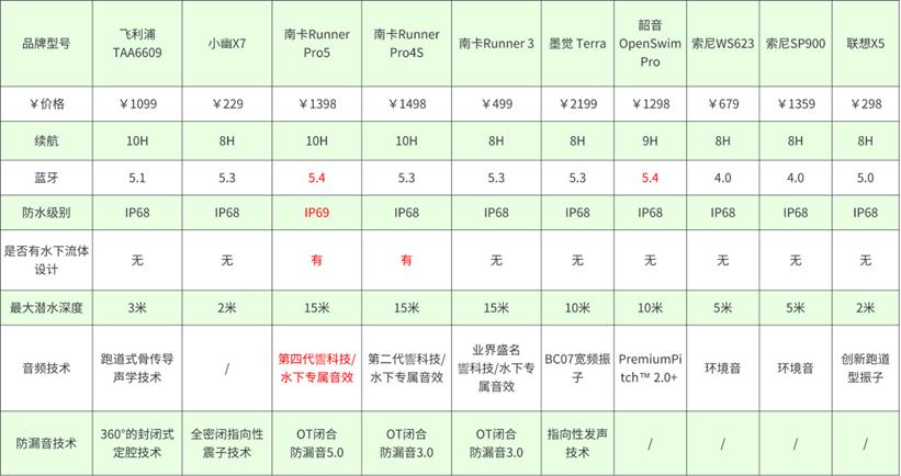 在對十款游泳耳機進行全面的測評後,可以明確地看到,南卡Runner Pro5在多個關鍵領域都展現出了卓越的性能,特別是在音質、防水和續航方面,它的表現尤爲突出。