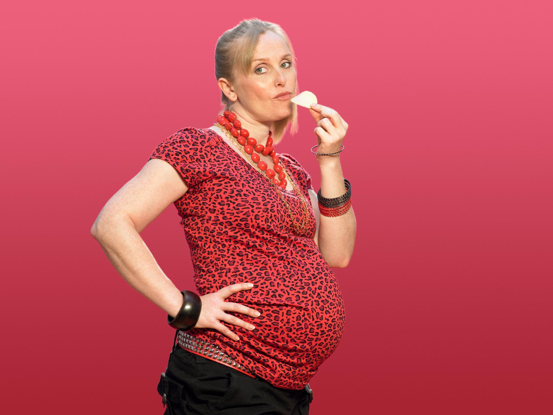 雖然說肚子確實是凸出來不少,該胖的地方胖了,肚子大了,胸部也大了,臀部也稍微大一些,可以說整個身材確實是前面凸很厲害,但後面依然還是有一點點翹的,還算得上有前凸後翹。