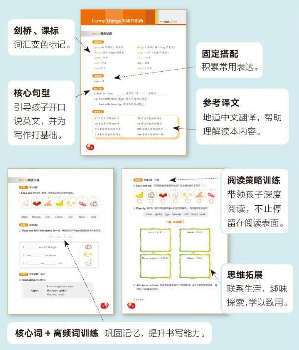 並且隨書附贈了【伴讀手冊】,包括 核心詞+高頻詞彙、固定搭配、句子、語法等的總結及閱讀訓練 等,幫孩子鞏固記憶,逐步深入,提升讀寫綜合能力,學習效果顯著提升。