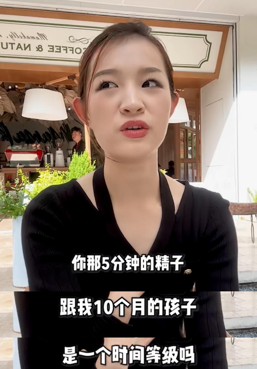 相親的女孩子聽到男方振振有詞地說:生孩子是男的提供精子,女的提供卵子,當然是公平公正的。於是直接反懟:你5分鐘的精子跟我10個月的孩子是一個時間等級嗎?這樣公平嗎?