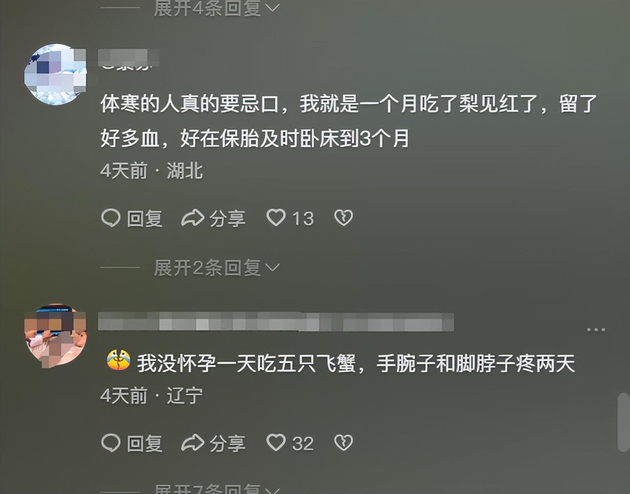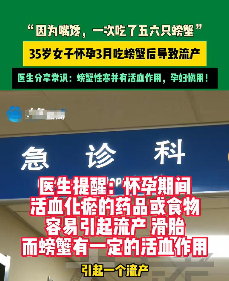 35歲孕婦喫6只螃蟹後流產,醫生:貪喫!網友:喫梨見紅要保胎