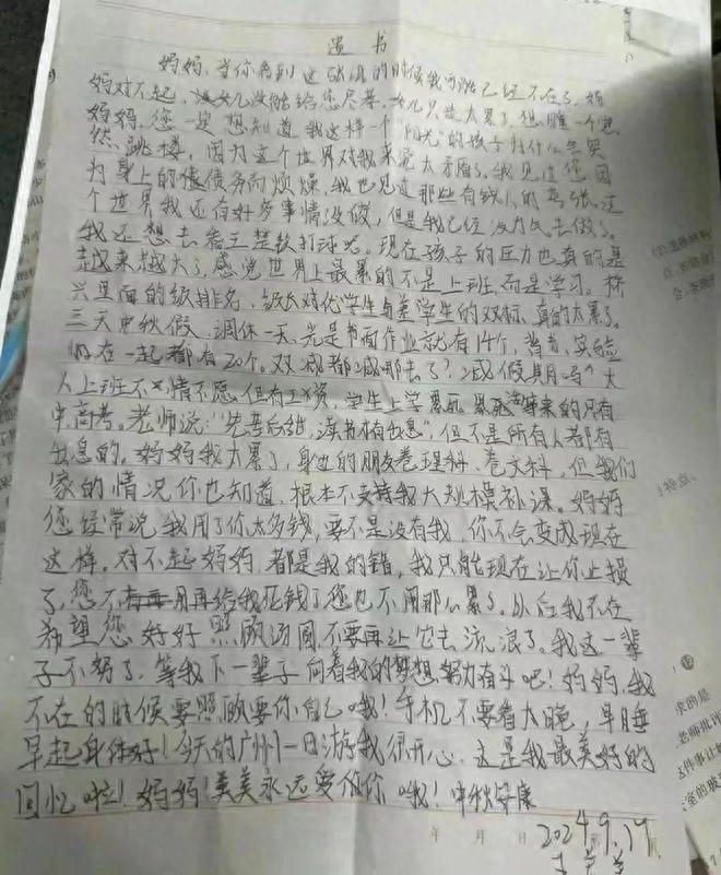 廣州跳樓女生遺書曝光,啥樣的家庭會成爲壓倒孩子的最後一根稻草