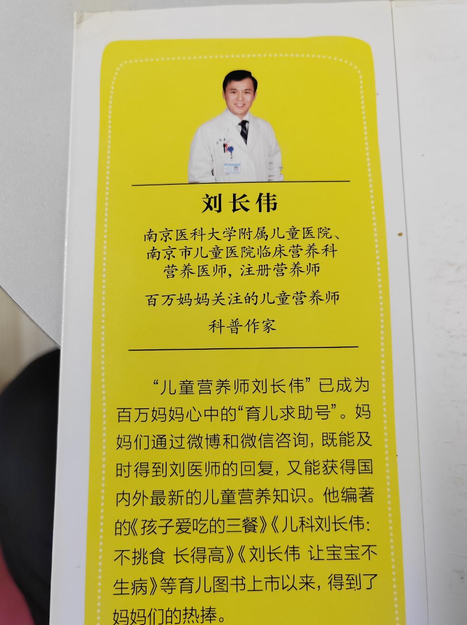 這本輔食書是由南京某三甲醫院營養科的醫生劉長偉撰寫的,他還寫了好幾本關於兒童營養的書籍,同時他還在網上給媽媽們科普各種關於兒童營養的知識,在網上有上百萬的粉絲,可以說是非常的專業和權威。