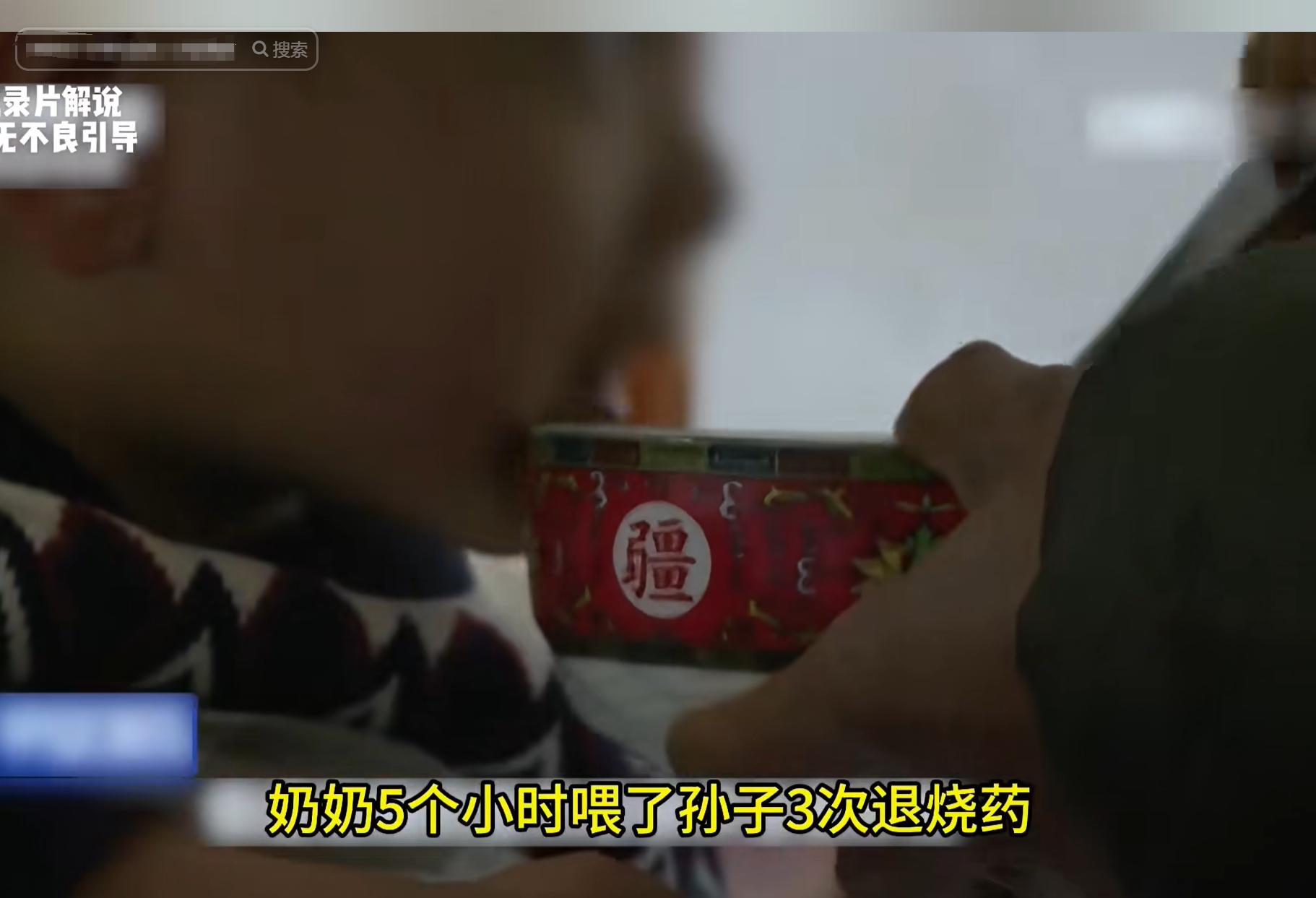 沒想到撓着撓着發現孩子發起燒來,半夜12點也不方便去診所,奶奶就把家裏面準備的退燒藥給翰翰喝了下去,喝完退燒藥沒多久翰翰就退燒了,但是退燒不到半個小時,翰翰就又開始燒了起來,而且溫度很高,奶奶就着急了,就擔心孩子被燒壞腦子,趕緊又把退燒藥找了出來,給孩子又餵了一次。