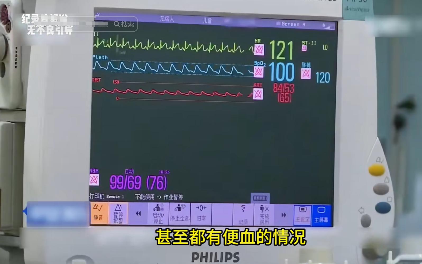 到了上級的醫院,醫生趕緊收治孩子進入了ICU,通過B超的檢查發現孩子的肝腎處有積液,而且腹腔、腸內間隙也有積液,可能就是有出血性的疾病,孩子在送到醫院的時候還一邊吐,吐的時候還有血,爸爸媽媽看到都驚呆了,也嚇壞了。