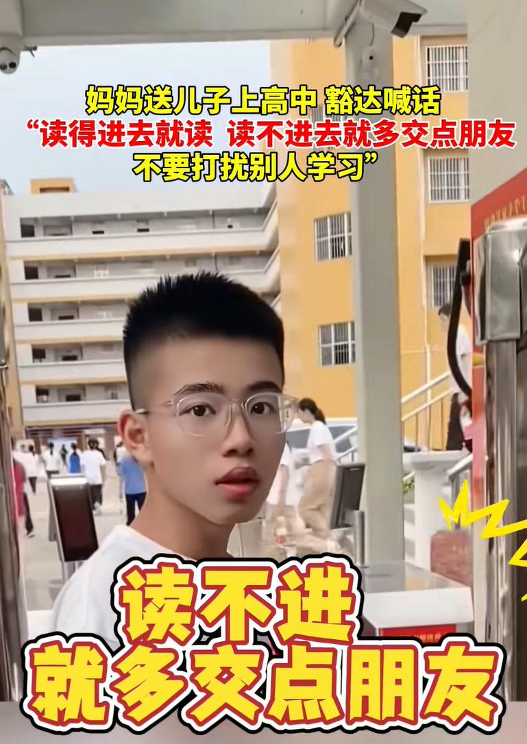 廣東有個媽媽在送自己的兒子去上高中的時候,兒子走進了校門,媽媽還在外面跟兒子說:讀得進就讀,讀不進就多交朋友,多喫點飯,長高一點,不要打擾別人學習。