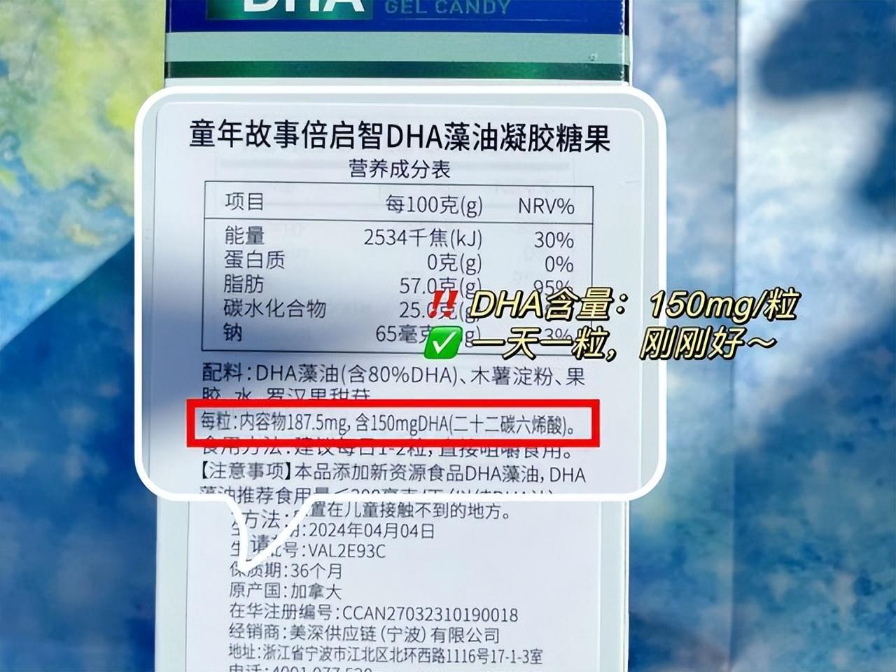 這款 童年故事DHA是單粒膠囊含藻油187.5mg,DHA含量達到150mg。
