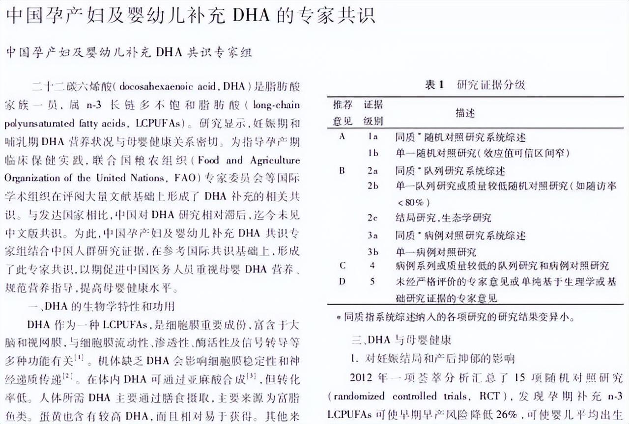 近幾年我國還專門推出了《中國孕產婦及嬰幼兒補充DHA的專家共識》,這篇權威共識中,對中國孕產婦和嬰幼兒DHA攝入和補充形成了以下共識: