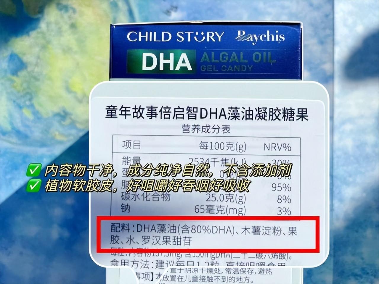 因此,想要孩子DHA攝入充足,建議喫些DHA補充劑,高純度的更好,尤其對海鮮過敏、平時不喜歡喫魚的孩子。