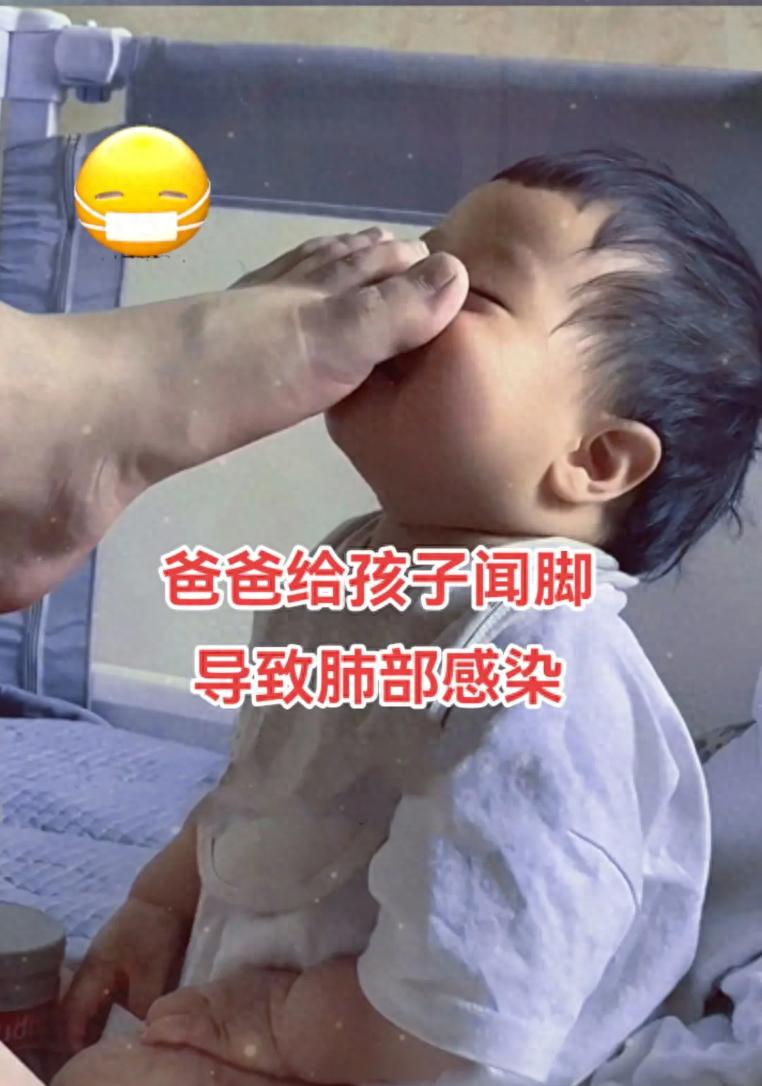 原來這個爸爸有腳氣,他的腳上有真菌,孩子在用鼻子聞用嘴巴親的時候,這些真菌會通過孩子的皮膚粘膜進入到孩子的體內,孩子的免疫力比較差,所以就會出現了真菌的感染,引發了孩子的肺炎。