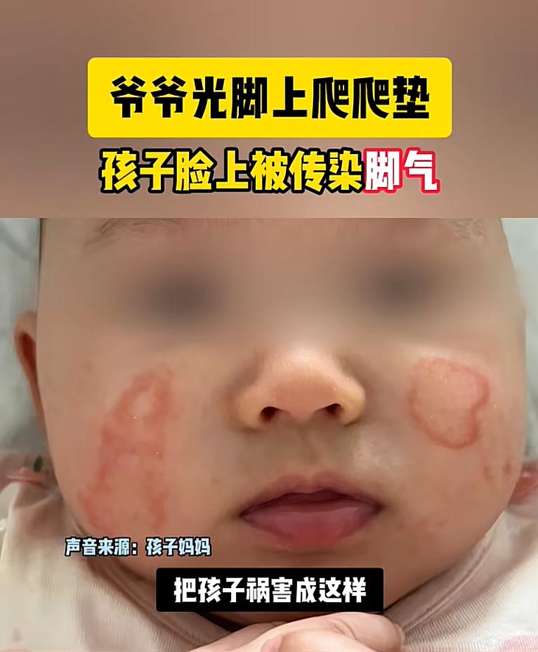 之前也有一個爺爺在家裏面帶孩子,進到孩子的爬行墊上都是光着腳進去的,在孩子的爬行墊上也是光着腳走,孩子甚至趴在爬行墊上用臉去蹭,因爲爬行墊上有爺爺腳上的真菌殘留,在爬行墊上孩子用臉來蹭導致臉上出現了真菌感染,導致孩子的皮膚破潰,簡直就要毀容了。