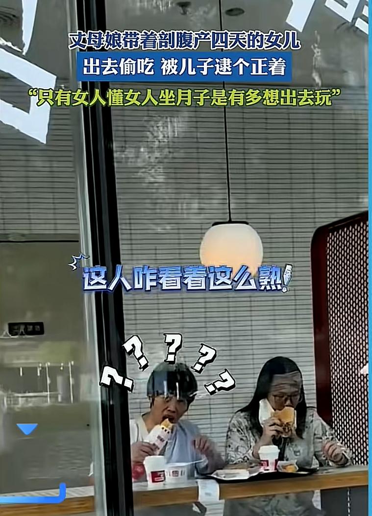 丈母孃帶剖腹產4天女兒偷喫漢堡,被女婿抓包,母女動作太搞笑