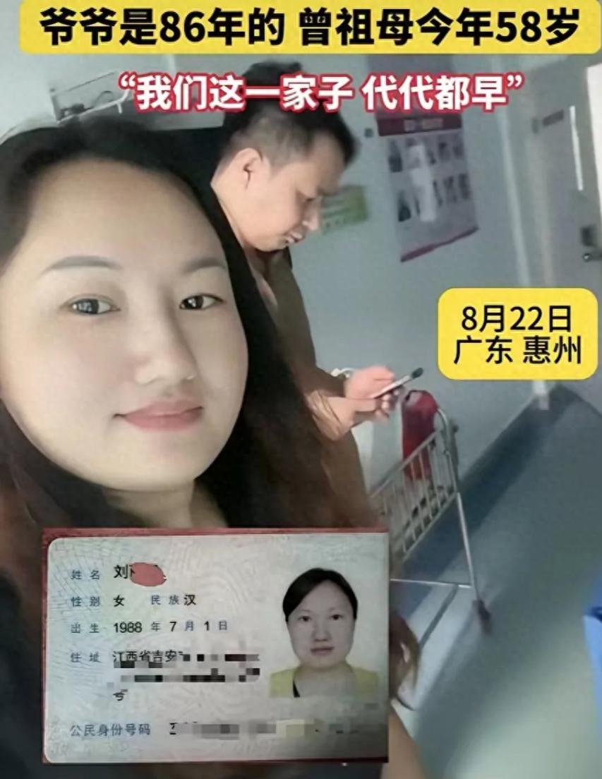 廣東惠州有一個奶奶曬出自己的身份證和自己的孫子,這個奶奶的身份證是1988年7月1日的,她的兒媳婦是2004年出生的,剛好20歲,而她的兒子比媳婦要小兩歲,剛好是18歲!